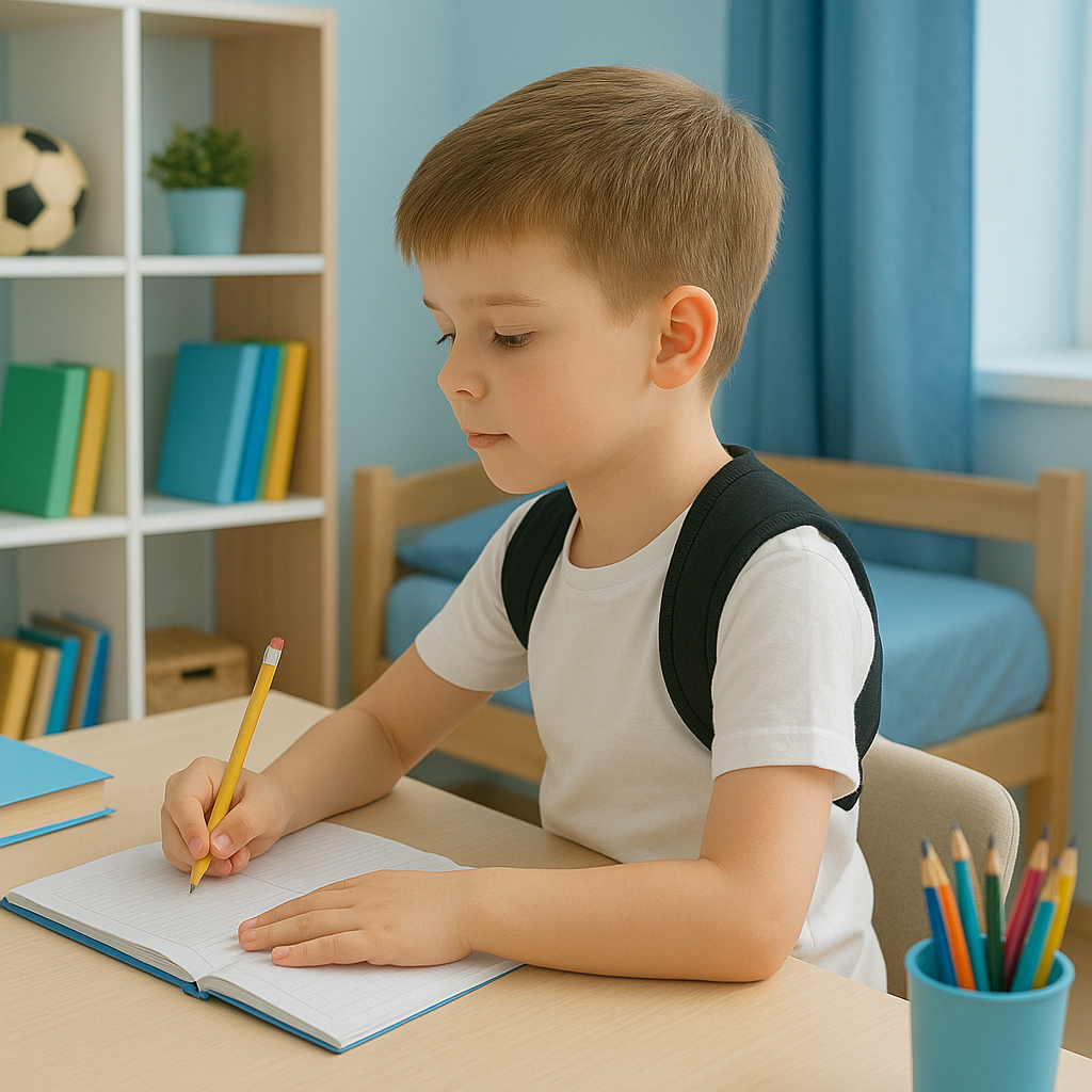 Al guiar la columna vertebral hacia una curva saludable y alinear los hombros, el corrector de postura enseña a los niños a sentarse y pararse más erguidos. Esto reduce la tensión en la espalda y los hombros, mejora la comodidad durante las actividades diarias y fomenta la confianza, ayudándolos a verse y sentirse más altos.